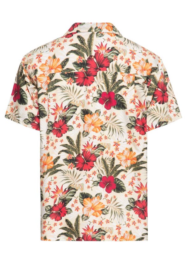 Het is tijd voor de zomer en dan mag deze Hawaii shirt Flowers van King kerosin niet ontbreken. Een heerlijk Hawaii shirt met een print van tropische bloemen op een mooie ecru kleurige achtergrond. Hawaii spat van dit shirt af.