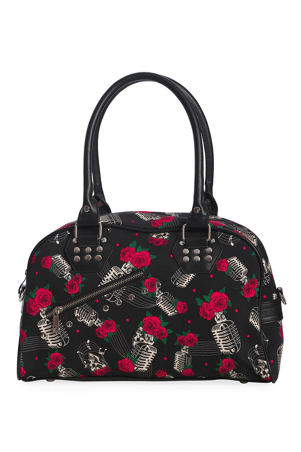 De Nashville Shoulder bag van Banned is een tas voor de stoere Rockabella. Deze beauty heeft een print van de iconische jaren 50 microfoon, roosjes en skulls eropstaan. Opent makkelijk met een rits en je kunt er lekker veel spullen in kwijt. Ook op de voorkant zit een ritsje voor bijvoorbeeld je lippenstift en binnenin heb je nog een geheim vakje.