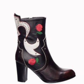 De WildHeart laarsjes hebben wat weg van een western/cowboy look. Die look is terug te vinden in de vorm van de neus, de prachtige vormen aan de zijkant van de laars en het mooie detail aan de achterkant. Wat deze laarsjes zo stoer en uniek maken zijn de witte details voorzien van ronde studs, de roosjes en niet te vergeten de neus en hak, deze zijn namelijk metallic rood.