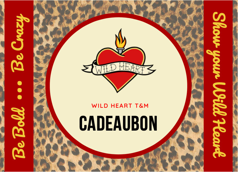 Weet je niet wat je moet geven als cadeautje? Koop dan een wild heart cadeaubon. Deze wordt opgestuurd naar de ontvanger en kan worden ingewisseld in de winkel of online.