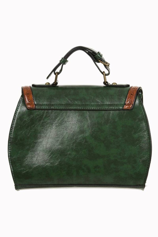 De Stevie Handbag van Banned is een prachtige vintage geinspireerde handtas. De tas heeft een leder look en feel en met een donkere groene kleur is het echt een plaatje.